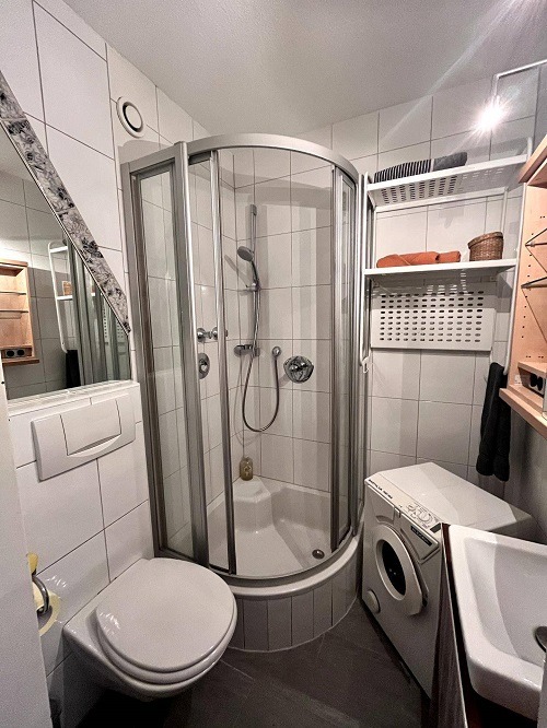 Badezimmer: Zwei Badezimmer mit Glasdusche (kleines Badezimmer) und Badewanne (grosses Badezimmer)