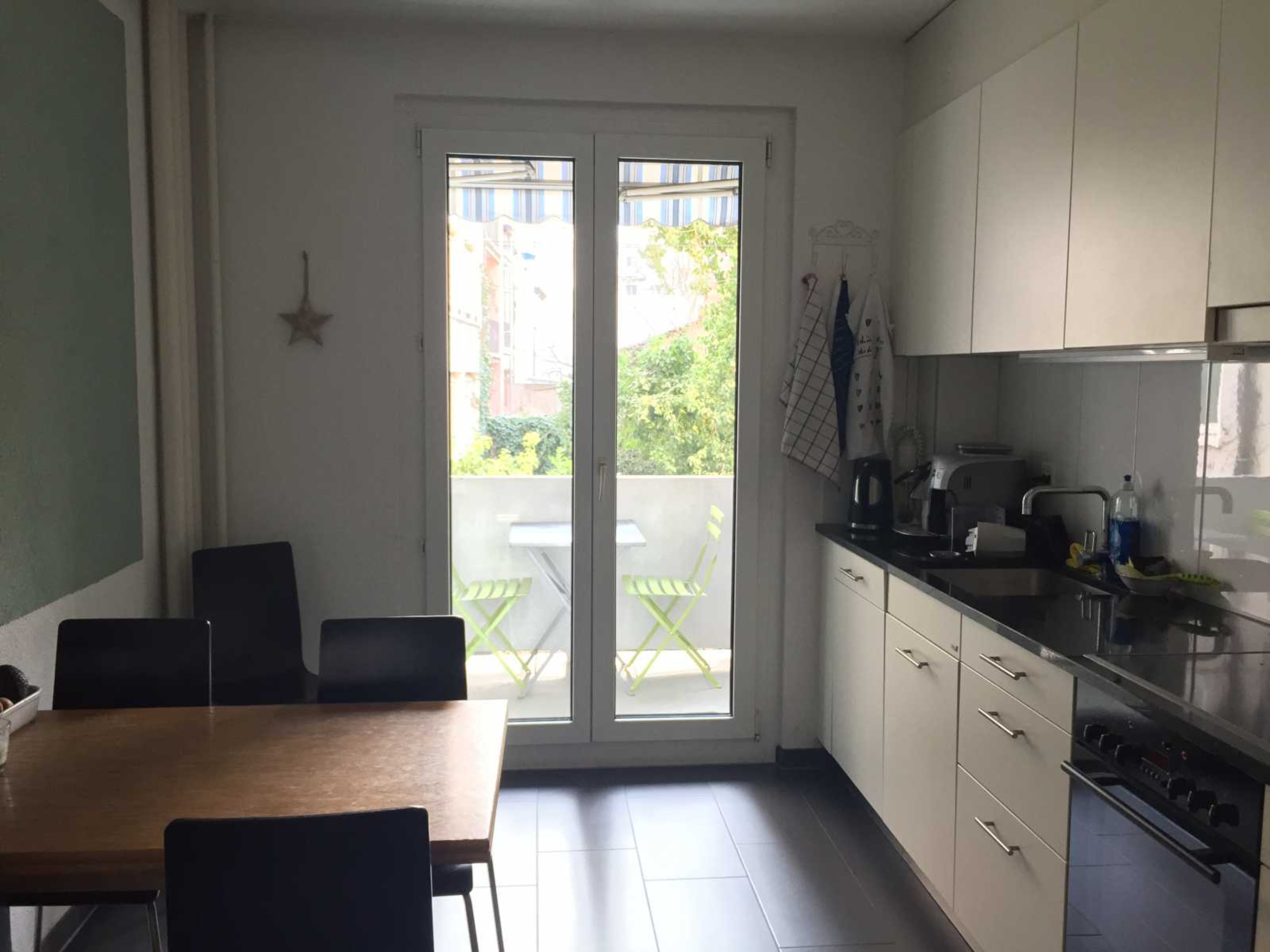 Das Zimmer ist ca. 18.5m2 gross, verfügt über einen Parkettboden, hat ein grosses Fenster Richtung Innenhof und direkten Zugang zum Balkon. Das Zimmer ist unmöbliert. Die moderne & gemütliche Küche mit einem ausziehbaren Tisch und das kleine aber feine Badezimmer sind bestens ausgestattet. In der Miete sind Nebenkosten (inkl. Internet) inbegriffen.