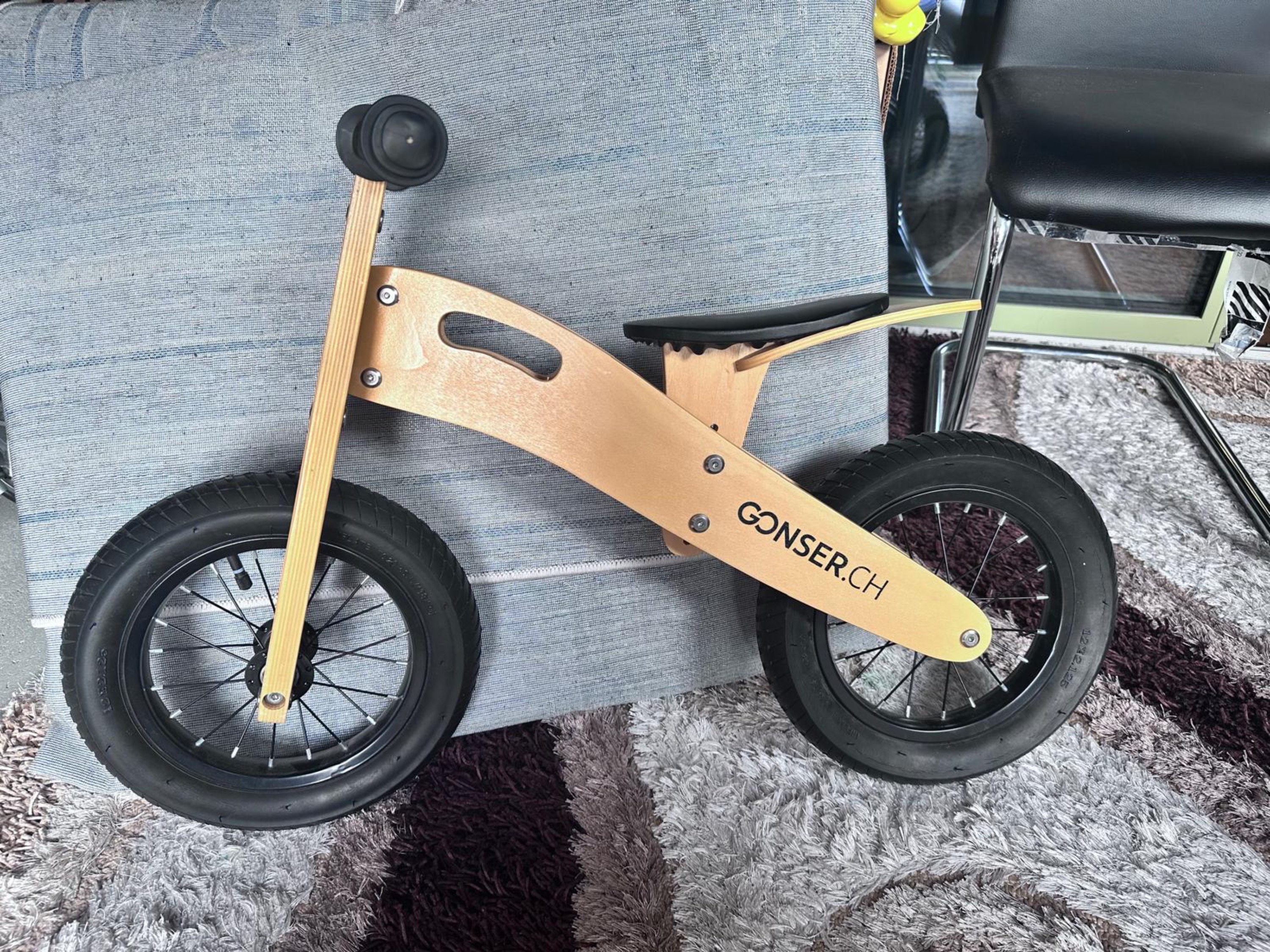 Neues Laufrad 12”, Holz natur & 3-Rad-Velo (Kauf Januar 2025)