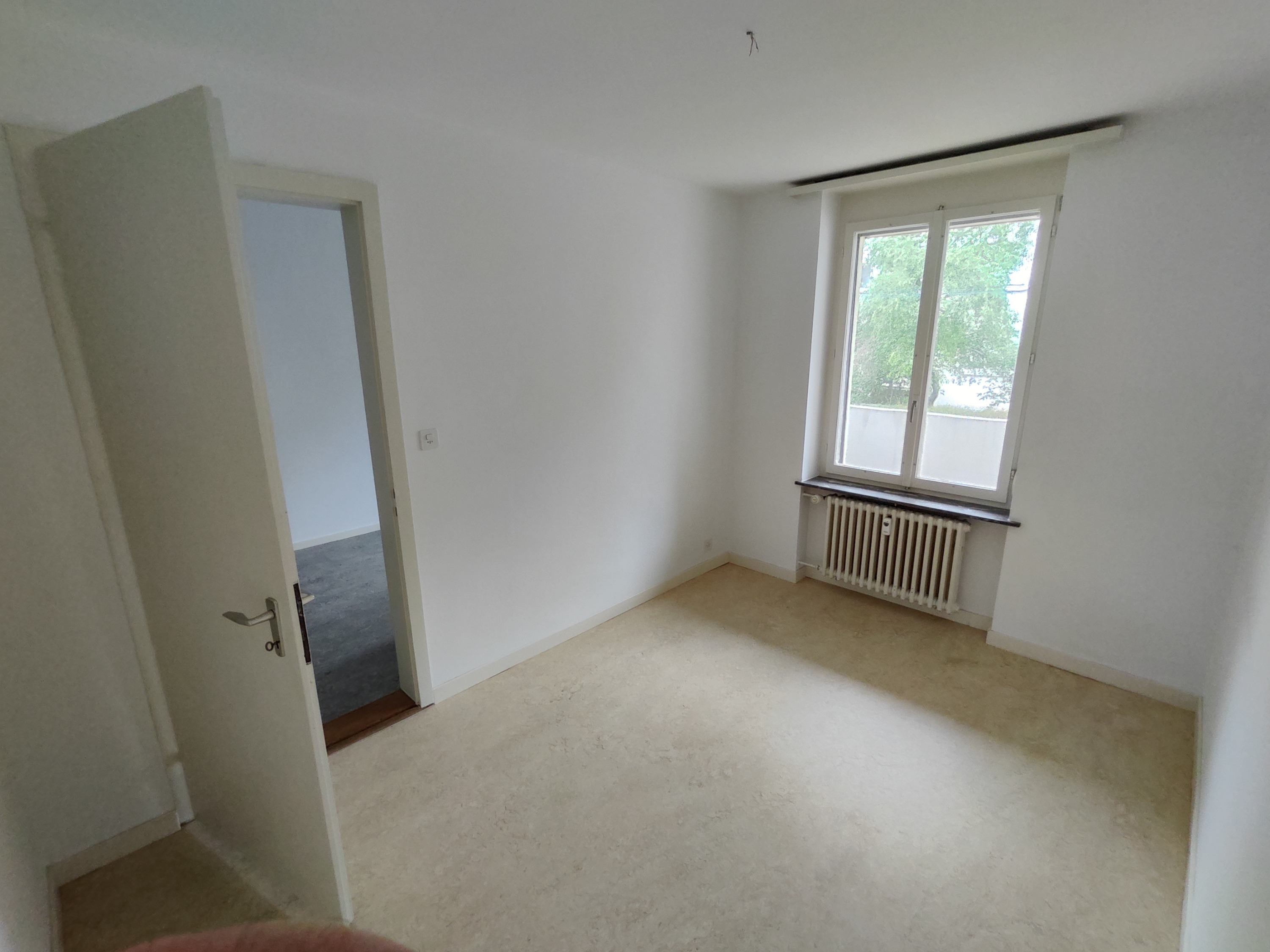 The room which is offered has 10 m², has its name on the attached plan "KIND". The wardrobe in the "ESSPLATZ" can be co-used, as well as our cellar cell. In the kitchen there's plenty space for your favourite food, although the fridge is not very big.